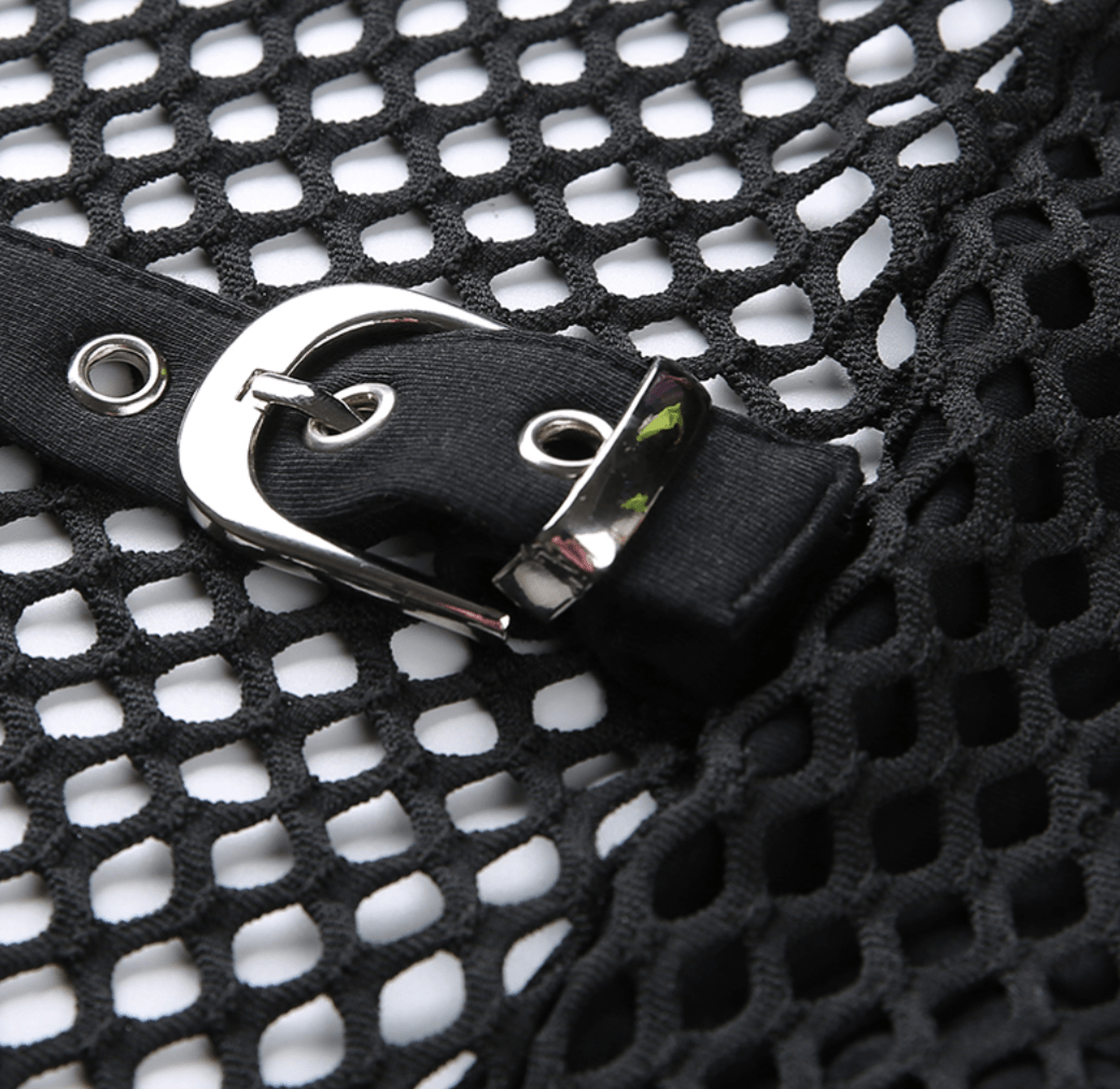 Everyone loves a Lil misery. Disrespect yer surrounding in this rowdy little black lace gothic crop top. This spandex/cotton blend tube top design is combined with a mesh upper area linked to a BDSM choker that would surely get any daddy's attention.
